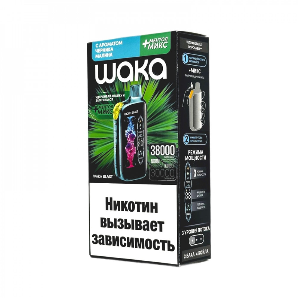 WAKA BLAST 38000 Hard - Черника малина + ментол микс - купить в Ковылкино